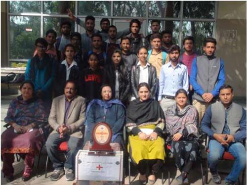 | Govt. MAM (PG) College, Jammu won the Best Stall Award in the Red Cross Mela organized by Regional Office of the Red Cross Society held in Gulshan Ground Jammu.The member on the stall exhibited in the Mela depicting various interesting and innovative ideas were the highlights of the Mela.Principal of the college Prof. (Dr.) Anita Sudan while appreciating the untiring efforts of the students under the able guidance of Dr. Romesh Kumar Gupta, Convener, Red Cross College Committee and his team, congratulated them for this outstanding achievement. Further the Principal said that these types of achievements are the reflections of the spirit and sincerity of both the students and the teachers. |