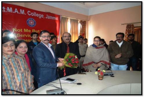 | To inform communities especially the youth of the emerging trends of social networking, an interactive seminar was organized by the NCC and NSS wing of Govt. M.A.M College. SSP Tajinder Singh, CID counter intelligence Jammu was the chief guest who was welcomed by the Principal Dr. Romesh Chander, he remarked his visit to the College is a land mark in the history of College and will be source of inspiration and motivation for the young students of the College, speaking on the occasion SSP stressed that cyber crime is increasing tremendously in the society and the need of hour is to know- how of the safety tips. The program was coordinated by Prof. Savita Jamwal and vote of thanks was presented by Dr. Sangeeta Sudan. |