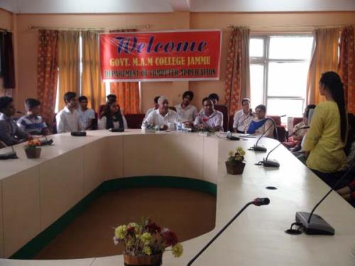 | Department of Computer Application of Govt. MAM College Jammu Organized Induction cum Orientation program for the BCA students, session 2017-18. The aim of the program was to provide the relevant information and scope of the BCA Course and the line of action to be followed by the students in seeking admission in the higher Courses and placement in the MNCs’.Prof. Vinod Sharma, HOD Dept of Computer Science and IT University of Jammu and alumini of the college was the main resource person on the occasion. He exhorted on the relevance of Information Technology in the Techno savvy competitive era of today and motivated them to widen their knowledge Horizons towards a brilliant future and also gave valuable inputs regarding placement of BCA students. Prof. Sharma Chief Guest on the occasion appreciated their innovative steps taken by the college by organizing a programme unique of its own kind.Dr. Ajeet Angral, Principal of the college inspire the students to work with zeal and vigor to achieve outstanding results in their academics. He appreciate the Department for providing a platform to the students to be familiar with their subjects. He emphasizes on conducting such type of activities by the department in future.Earlier Ms. Monika Mahajan , HOD, Department of Computer Application welcome the guests and the students and give a brief profile of the Department. Induction program was followed by a healthy interactive session. The program ended with formal vote of thanks by Prof. Shallu Gupta. The comparing of the programme was done by Ms. Sapna and Ms. Shivani students of BCA. |